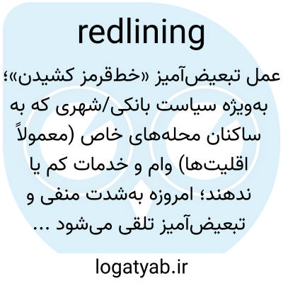 📌 یک رویه تبعیض‌آمیز که از طریق آن بانک‌ها، شرکت‌های بیمه و غیره، وام‌ها، رهن‌ها، بیمه و غیره را در مناطق جغرافیایی خاص، به ویژه محله‌های مرکزی شهر، رد یا محدود می‌کنند.