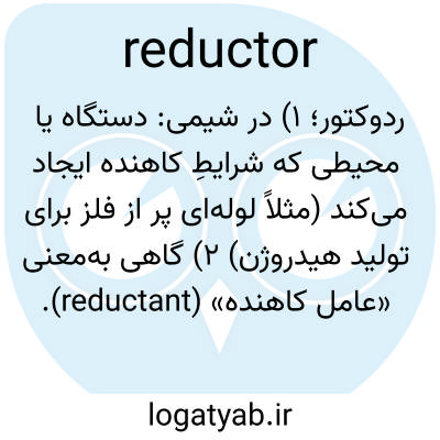 ردوکتور؛ ۱) در شیمی: دستگاه یا محیطی که شرایطِ کاهنده ایجاد می‌کند (مثلاً لوله‌ای پر از فلز برای تولید هیدروژن) ۲) گاهی به‌معنی «عامل کاهنده» (reductant).
