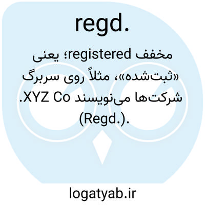 مخفف registered؛ یعنی «ثبتشده»، مثلاً روی سربرگ شرکتها مینویسند XYZ Co. (Regd.).