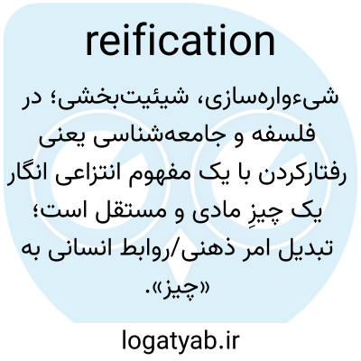 📌 عمل برخورد با چیزی انتزاعی، مانند یک ایده، رابطه، سیستم، کیفیت و غیره، گویی که یک شیء ملموس است.