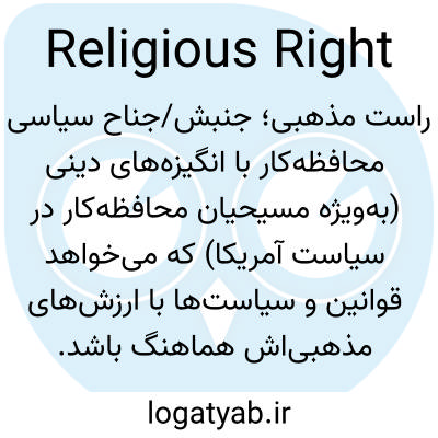 📌 ائتلافی از رهبران بنیادگرای پروتستان راستگرا (به بنیادگرایی مراجعه کنید) که از زمان رأی دیوان عالی در سال ۱۹۷۲ در پرونده رو در مقابل وید، به طور فزایندهای در سیاست فعال شدهاند. جری فالول و پت رابرتسون از جمله رهبران آن هستند. راست مذهبی، شبکهای از کتابفروشیهای مسیحی، ایستگاههای رادیویی و مبلغان تلویزیونی را حمایت مالی میکند. راست مذهبی که با سقط جنین (همچنین به سقط جنین مراجعه کنید)، پورنوگرافی و آنچه که به عنوان به حاشیه راندن دین در زندگی عمومی آمریکا میبیند، مخالف است، از دعا در مدارس دولتی نیز حمایت کرده است. در دهه ۱۹۸۰، این گروه از رئیس جمهور رونالد ریگان حمایت قوی کرد.