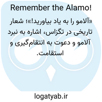«آلامو را به یاد بیاورید!»؛ شعار تاریخی در تگزاس، اشاره به نبرد آلامو و دعوت به انتقام‌گیری و استقامت.