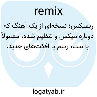 ریمیکس؛ نسخه‌ای از یک آهنگ که دوباره میکس و تنظیم شده، معمولاً با بیت، ریتم یا افکت‌های جدید.