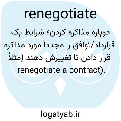 دوباره مذاکره کردن؛ شرایط یک قرارداد/توافق را مجدداً مورد مذاکره قرار دادن تا تغییرش دهند (مثلاً renegotiate a contract).
