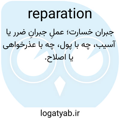 📌 غرامتی که به صورت نقدی، مادی، نیروی کار و غیره توسط یک کشور شکست خورده به کشور دیگر یا به یک فرد برای خسارات وارده در طول یا در نتیجه جنگ پرداخت می‌شود.