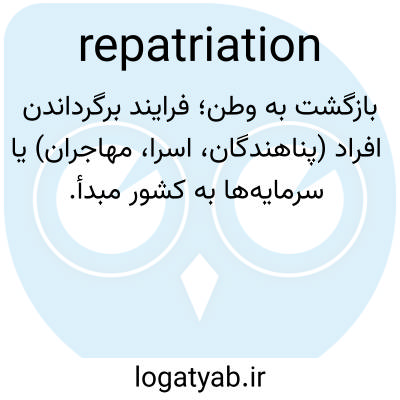 📌 عمل یا فرآیند بازگرداندن یک شخص یا چیز به کشور مبدا: موزه‌ها به طور فزاینده‌ای با فشار کشورهای سابقاً مستعمره که به دنبال بازگرداندن آثار باستانی بی‌قیمت خود هستند، مواجه هستند.