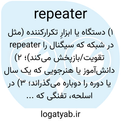 ۱) دستگاه یا ابزارِ تکرارکننده (مثل repeater در شبکه که سیگنال را تقویت/بازپخش می‌کند)؛ ۲) دانش‌آموز یا هنرجویی که یک سال یا دوره را دوباره می‌گذراند؛ ۳) در اسلحه، تفنگی که چند گلوله را پشت‌سرهم شلیک می‌کند.