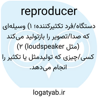 دستگاه/فرد تکثیرکننده؛ ۱) وسیله‌ای که صدا/تصویر را بازتولید می‌کند (مثل loudspeaker) ۲) کسی/چیزی که تولیدمثل یا تکثیر را انجام می‌دهد.