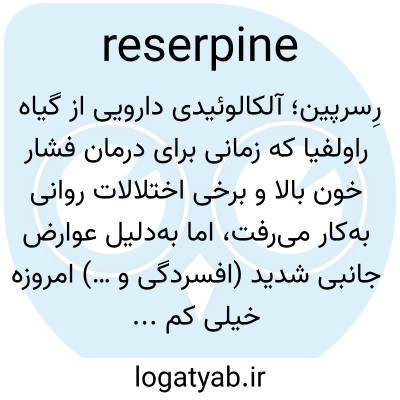 📌 آلکالوئیدی با فرمول شیمیایی C33H40N2O9 که از ریشه گیاه راولفیا، Rauwolfia serpentina، به دست میآید و در درمان فشار خون بالا استفاده میشود.