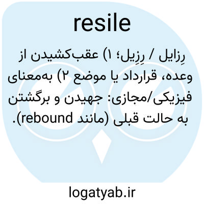 رِزایل / رِزِیل؛ ۱) عقب‌کشیدن از وعده، قرارداد یا موضع ۲) به‌معنای فیزیکی/مجازی: جهیدن و برگشتن به حالت قبلی (مانند rebound).