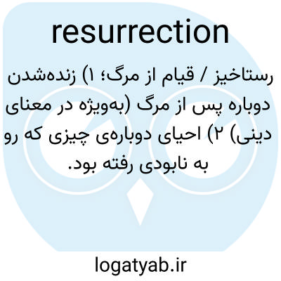 رستاخیز / قیام از مرگ؛ ۱) زنده‌شدن دوباره پس از مرگ (به‌ویژه در معنای دینی) ۲) احیای دوباره‌ی چیزی که رو به نابودی رفته بود.
