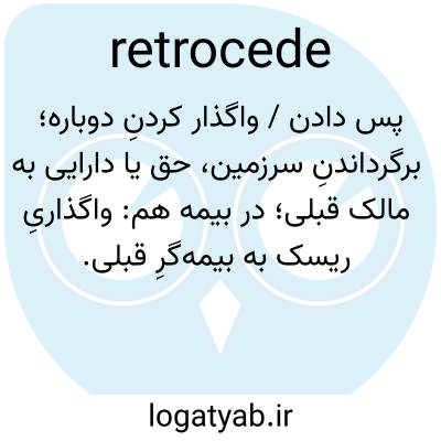 پس دادن / واگذار کردنِ دوباره؛ برگرداندنِ سرزمین، حق یا دارایی به مالک قبلی؛ در بیمه هم: واگذاریِ ریسک به بیمه‌گرِ قبلی.
