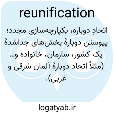 📌 به هم پیوستن مجدد افراد یا چیزهایی که از هم جدا شده بودند؛ اتحاد مجدد