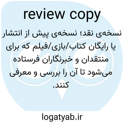 📌 نسخهای از کتاب که توسط ناشر برای یک مجله، روزنامه و غیره ارسال میشود تا امکان بررسی آن فراهم شود