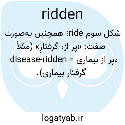 شکل سوم ride؛ همچنین به‌صورت صفت: «پر از، گرفتارِ» (مثلاً disease-ridden = پر از بیماری، گرفتار بیماری).