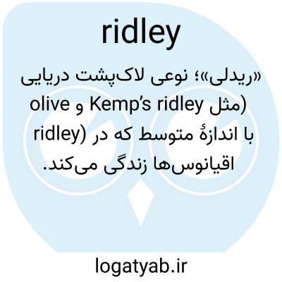 📌 همچنین به نامهای ریدلی اقیانوس آرام و ریدلی زیتونی نیز شناخته میشود. نوعی لاکپشت دریایی به رنگ زیتونی، Lepidochelys olivacea، شبیه به L. kempii، که در آبهای گرمسیری اقیانوسهای هند، آرام و اطلس جنوبی زندگی میکند: در سراسر محدوده پراکندگی خود در معرض تهدید یا خطر انقراض قرار دارد.