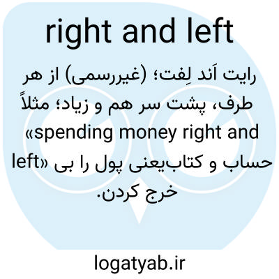 رایت اَند لِفت؛ (غیررسمی) از هر طرف، پشت سر هم و زیاد؛ مثلاً «spending money right and left» یعنی پول را بی‌حساب و کتاب خرج کردن.