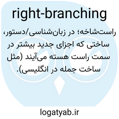 📌 (از یک ساختار دستوری) که با پیچیدگی ساختاری بیشتر در جایگاه بعد از هسته مشخص میشود، مانند عبارت the house of the friend of my brother؛ که بیشتر سازهها را در سمت راست نمودار درختی (شاخهبندی چپ) دارد.
