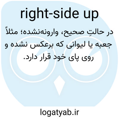 در حالتِ صحیح، وارونه‌نشده؛ مثلاً جعبه یا لیوانی که برعکس نشده و روی پای خود قرار دارد.