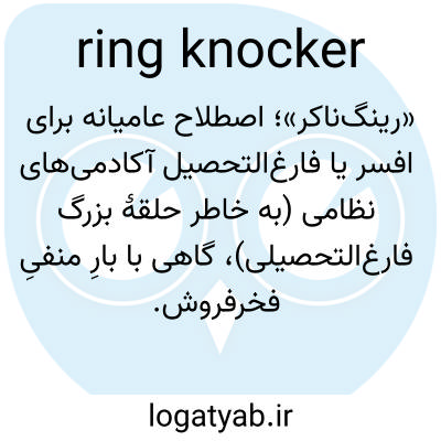 «رینگ‌ناکر»؛ اصطلاح عامیانه برای افسر یا فارغ‌التحصیل آکادمی‌های نظامی (به خاطر حلقهٔ بزرگ فارغ‌التحصیلی)، گاهی با بارِ منفیِ فخرفروش.