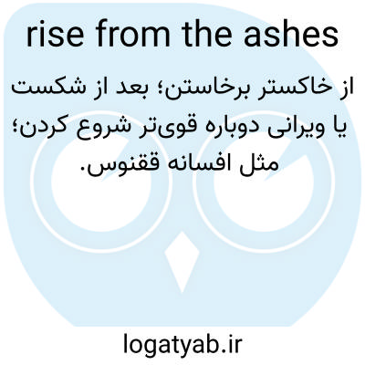 📌 از چیزی که ویران شده، همچون چیزی نو پدیدار شدن، مانند چند ماه پس از زلزله، بخشهای بزرگی از شهر از خاکستر برخاسته بودند. این عبارت به ققنوس افسانهای اشاره دارد، پرندهای که ظاهراً از خاکستر آتش سوزان خود با جوانی تازه برخاست.