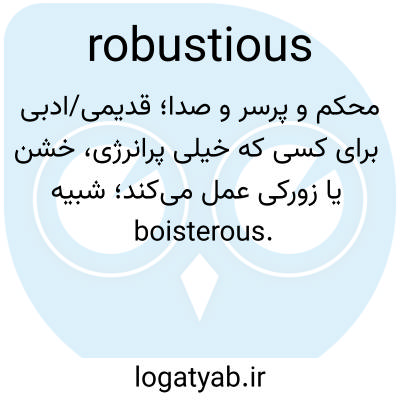 محکم و پرسر و صدا؛ قدیمی/ادبی برای کسی که خیلی پرانرژی، خشن یا زورکی عمل می‌کند؛ شبیه boisterous.
