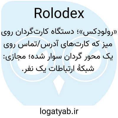 «رولودِکس»؛ دستگاه کارت‌گردان روی میز که کارت‌های آدرس/تماس روی یک محور گردان سوار شده؛ مجازی: شبکهٔ ارتباطات یک نفر.