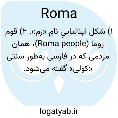 📌 همچنین عضوی از گروه قومی سنتی کوچنشین رومیزبان که در قرنهای ۱۴ و ۱۵ از شمال هند به اروپا مهاجرت کردند، یا هر یک از نوادگان آنها در سراسر جهان.