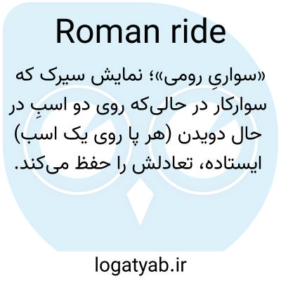 «سواریِ رومی»؛ نمایش سیرک که سوارکار در حالی‌که روی دو اسبِ در حال دویدن (هر پا روی یک اسب) ایستاده، تعادلش را حفظ می‌کند.