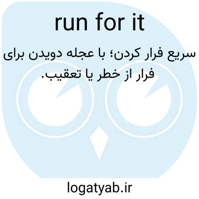 📌 همچنین، برای نجات جان خود فرار کنید. تا حد امکان سریع حرکت کنید، چه برای فرار از خطر و چه برای رسیدن سریع به چیزی. برای مثال، بهتر است قبل از اینکه معلم شما را بگیرد، برای نجات جان خود فرار کنید، یا قلدر دنبال شما میآید - برای نجات جان خود فرار کنید! کلمه for it در اصطلاح اول تقریباً به طور قطع به معنای "برای نجات جان خود" است - یعنی نجات جان خود، کاربردی که میتواند تحتاللفظی یا اغراقآمیز باشد. همچنین به dear life مراجعه کنید؛ برای آن استراحتی ایجاد کنید.