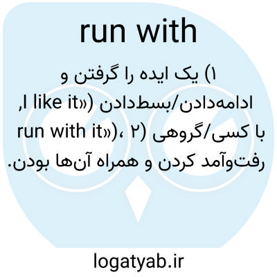 ۱) یک ایده را گرفتن و ادامه‌دادن/بسط‌دادن («I like it, run with it»)، ۲) با کسی/گروهی رفت‌وآمد کردن و همراه آن‌ها بودن.