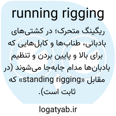 ریگینگ متحرک؛ در کشتی‌های بادبانی، طناب‌ها و کابل‌هایی که برای بالا و پایین بردن و تنظیم بادبان‌ها مدام جابه‌جا می‌شوند (در مقابل «standing rigging» که ثابت است).