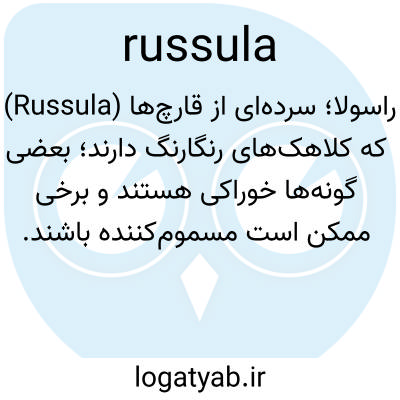 📌 هر قارچی از جنس بازیدیومیست‌های بزرگ Russula، با شکل قارچ سمی معمولی و اغلب رنگ روشن، مانند R. ochroleuca زرد و R. lutea سبز، R. aeruginea بنفش-صورتی، R. fragilis بنفش و R. atropurpurea بنفش