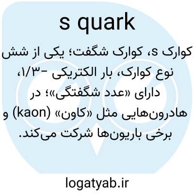 کوارک s، کوارک شگفت؛ یکی از شش نوع کوارک، بار الکتریکی −۱/۳، دارای «عدد شگفتگی»؛ در هادرون‌هایی مثل «کاون» (kaon) و برخی باریون‌ها شرکت می‌کند.