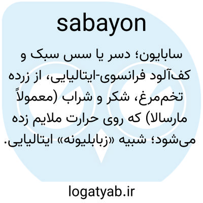 سابایون؛ دسر یا سس سبک و کف‌آلود فرانسوی-ایتالیایی، از زرده تخم‌مرغ، شکر و شراب (معمولاً مارسالا) که روی حرارت ملایم زده می‌شود؛ شبیه «زبابلیونه» ایتالیایی.