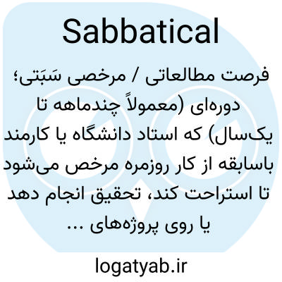 📌 (با حروف کوچک)، هر دوره طولانی مرخصی از کار معمول، به خصوص برای استراحت، کسب مهارت یا آموزش جدید و غیره.