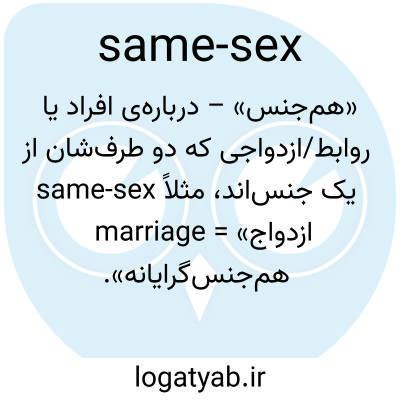 «هم‌جنس» – درباره‌ی افراد یا روابط/ازدواجی که دو طرف‌شان از یک جنس‌اند، مثلاً same-sex marriage = «ازدواج هم‌جنس‌گرایانه».