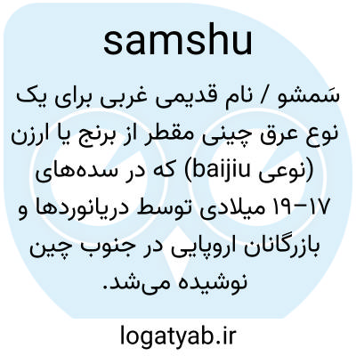 سامشو، سامشو، sam′shōō، اسم. نوعی عرق تند که چینیها از برنج تقطیر میکردند: هر نوع عرقی.