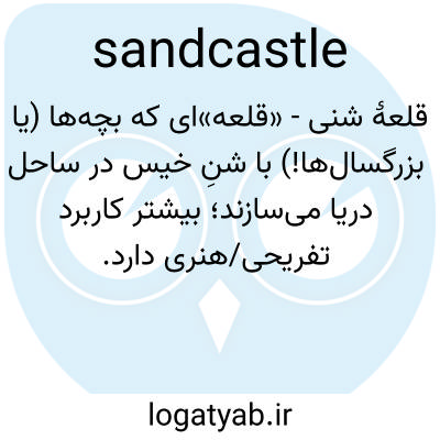 📌 سازه‌ای کوچک و قلعه‌مانند که از شن مرطوب ساخته شده است، مانند آنچه کودکان در ساحل دریا می‌سازند.
