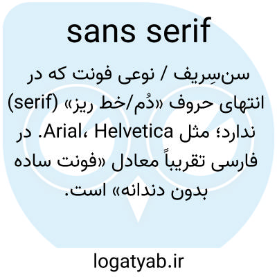 سن‌سِریف / نوعی فونت که در انتهای حروف «دُم/خط ریز» (serif) ندارد؛ مثل Arial، Helvetica. در فارسی تقریباً معادل «فونت ساده بدون دندانه» است.