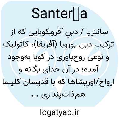 سانتریا / دینِ آفروـکوبایی که از ترکیب دین یوروبا (آفریقا)، کاتولیک و نوعی روح‌باوری در کوبا به‌وجود آمده؛ در آن خدای یگانه و ارواح/اوریشاها که با قدیسان کلیسا هم‌ذات‌پنداری شده‌اند، پرستش می‌شوند.