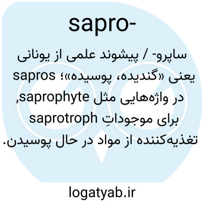 ساپرو- / پیشوند علمی از یونانی sapros یعنی «گندیده، پوسیده»؛ در واژه‌هایی مثل saprophyte, saprotroph برای موجوداتِ تغذیه‌کننده از مواد در حال پوسیدن.