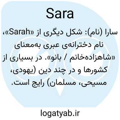 سارا (نام): شکل دیگری از «Sarah»، نام دخترانه‌ی عبری به‌معنای «شاهزاده‌خانم / بانو». در بسیاری از کشورها و در چند دین (یهودی، مسیحی، مسلمان) رایج است.