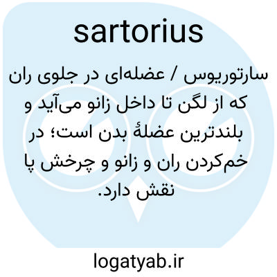 سارتوریوس / عضله‌ای در جلوی ران که از لگن تا داخل زانو می‌آید و بلندترین عضلهٔ بدن است؛ در خم‌کردن ران و زانو و چرخش پا نقش دارد.