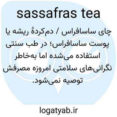 📌 چایی که از پوست خشک و معطر ریشه درخت ساسافراس تهیه می‌شود و اغلب به عنوان محرک، معرق و ادرارآور کاربرد دارویی دارد.
