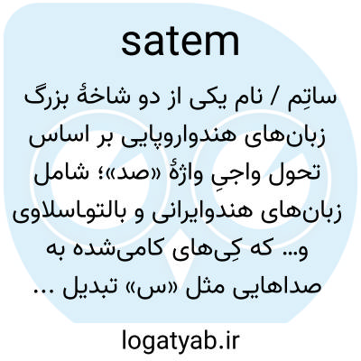 📌 متعلق به یا متشکل از آن شاخههای خانواده هندواروپایی که در آنها صداهای سایشی حفرهای یا کامی، مانند صداهای (س) یا (ش)، در دوران باستان از انسدادهای کامی پروتو-هندواروپایی تکامل یافتهاند: شاخههای ساتم عبارتند از هندوایرانی، ارمنی، اسلاوی، بالتیک و آلبانیایی.