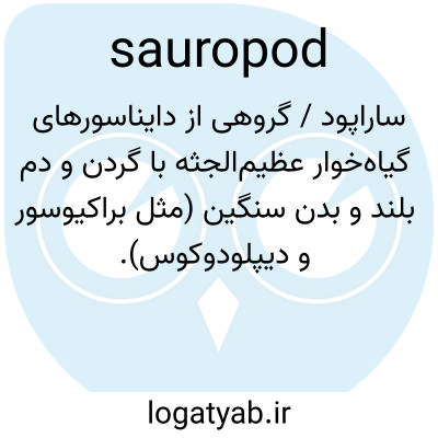 📌 هر دایناسور گیاهخوار از زیرراسته ساروپودا، از دورههای ژوراسیک و کرتاسه، دارای سری کوچک، گردن و دمی دراز، و پاهایی پنج انگشتی: بزرگترین حیوان خشکیزی شناخته شده.