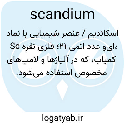 اسکاندیم / عنصر شیمیایی با نماد Sc و عدد اتمی ۲۱؛ فلزی نقره‌ای، کمیاب، که در آلیاژها و لامپ‌های مخصوص استفاده می‌شود.