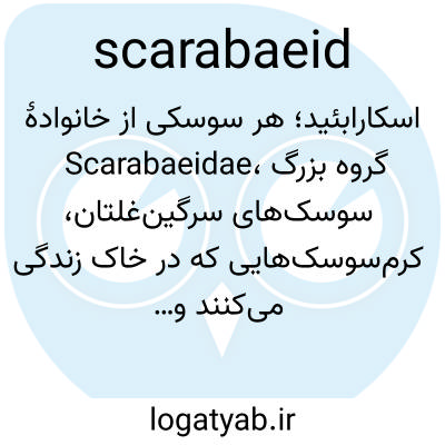 📌 متعلق یا مربوط به Scarabaeidae، خانواده‌ای از سوسک‌های لاملی‌کورن، شامل سوسک‌های اسکاراب، سوسک‌های سرگین، سن‌های ژوئن و سوسک‌های سوسکی.
