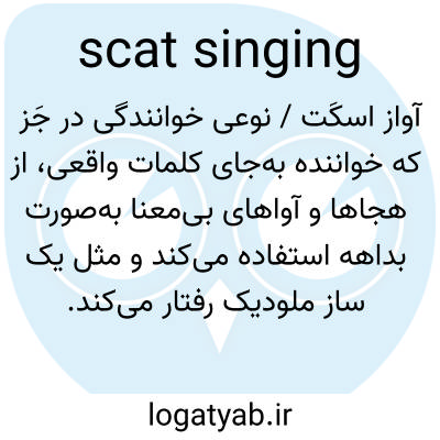 📌 آوازی که در آن خواننده هجاهای بیمعنی بداهه را جایگزین کلمات یک آهنگ میکند و سعی میکند مانند یک ساز موسیقی صدا و جملهبندی کند.